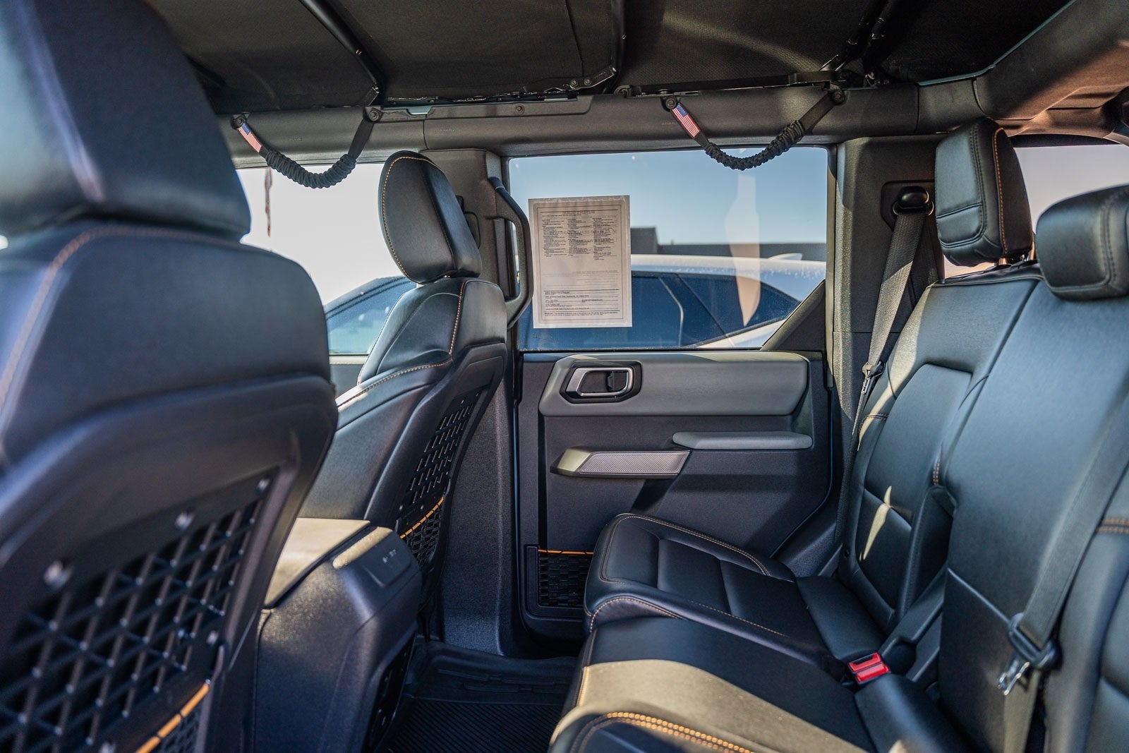 This vehicle comes equipped with Equipment Group 331A Standard Package, Ford Certified, 4-Wheel Disc Brakes, 4.7 Axle Ratio, 6 Speakers, ABS brakes, Air Conditioning, Alloy wheels, AM/FM radio: SiriusXM with 360L, AM/FM Stereo, Auto High-beam Headlights, Brake assist, Compass, Delay-off headlights, Driver door bin, Driver vanity mirror, Dual front impact airbags, Dual front side impact airbags, Electronic Stability Control, Emergency communication system: 911 Assist, Exterior Parking Camera Rear, Ford Performance Heavy-Duty Modular Front Bumper, Front anti-roll bar, Front Bucket Seats, Front Center Armrest, Front reading lights, Front wheel independent suspension, Fully automatic headlights, Heated door mirrors, Illuminated entry, Integrated roll-over protection, Leather Shift Knob, Low tire pressure warning, Marine Grade Vinyl Bucket Seats, Occupant sensing airbag, Outside temperature display, Overhead airbag, Overhead console, Panic alarm, Passenger door bin, Passenger vanity mirror, Power door mirrors, Power steering, Power windows, Radio data system, Remote keyless entry, Security system, SiriusXM Radio w/360L, Speed control, Split folding rear seat, Steering wheel mounted audio controls, SYNC 4, Tachometer, Telescoping steering wheel, Tilt steering wheel, Traction control, Trip computer, Variably intermittent wipers, Voltmeter, and Wheels: 17 Machined Carbonized Aluminum.