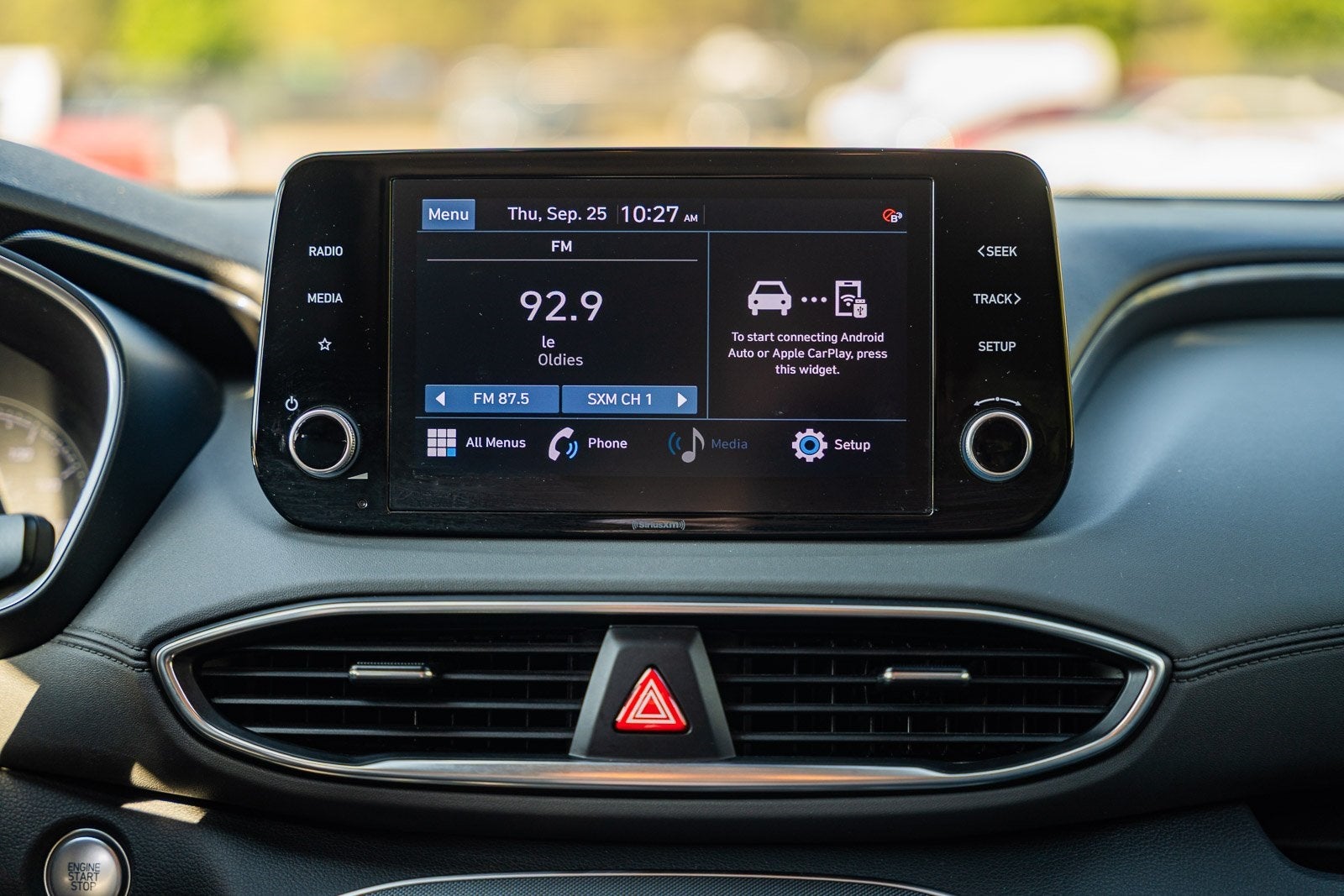 - Radio: AM/FM Display Audio -inc: 8" display screen, wireless Apple CarPlay and Android Auto, Bluetooth® hands-free w/wireless audio streaming, steering wheel audio and phone controls, dual front USB ports, rear seat quiet mode, SiriusXM, HD Radio and Blue Link connected car system