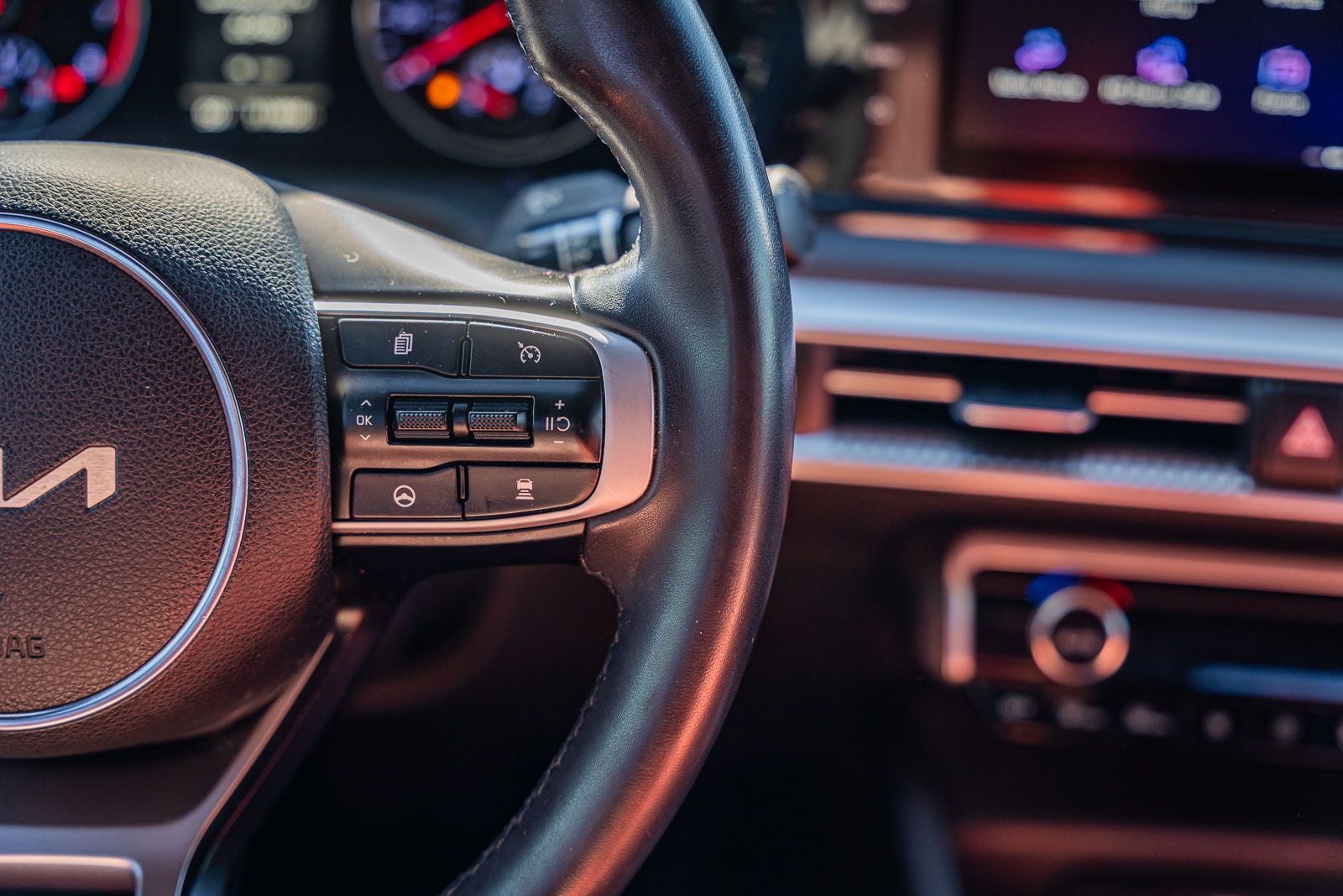 This K5 GT-Line includes GT-Line Premium Package (Forward Collision Avoidance-Assist, Highway Driving Assist, LED Projection Headlamps, and Smart Cruise Control w/Stop & Go), GT-Line Red Interior Package, 4-Wheel Disc Brakes, 6 Speakers, ABS brakes, Air Conditioning, Alloy wheels, AM/FM radio: SiriusXM, Apple CarPlay & Android Auto, Auto High-beam Headlights, Automatic temperature control, Brake assist, Bumpers: body-color, Carpeted Floor Mats, Cloth/SynTex Seat Trim, Delay-off headlights, Driver door bin, Driver vanity mirror, Dual front impact airbags, Dual front side impact airbags, Electronic Stability Control, Four wheel independent suspension, Front anti-roll bar, Front Bucket Seats, Front Center Armrest, Front dual zone A/C, Front fog lights, Front reading lights, Fully automatic headlights, Heated door mirrors, Illuminated entry, Knee airbag, Low tire pressure warning, Navigation System, Occupant sensing airbag, Outside temperature display, Overhead airbag, Overhead console, Panic alarm, Passenger door bin, Passenger vanity mirror, Power door mirrors, Power driver seat, Power steering, Power windows, Radio data system, Radio: AM/FM/MP3 Audio System, Rear anti-roll bar, Rear seat center armrest, Rear side impact airbag, Rear window defroster, Remote keyless entry, Security system, Speed control, Speed-sensing steering, Split folding rear seat, Spoiler, Sport steering wheel, Steering wheel mounted audio controls, Tachometer, Telescoping steering wheel, Tilt steering wheel, Traction control, Trip computer, Turn signal indicator mirrors, Variably intermittent wipers, and Wheels: 18 Gloss Black Machined Finish Alloy . While every effort has been made to ensure display of accurate data, the vehicle listings within this web site may not reflect all accurate vehicle items. All Inventory listed is subject to prior sale. The vehicle photo displayed may be an example only. Pricing throughout the web site does not include any options that may have been installed at the dealership. Please see the dealer for details. Vehicles may be in transit or currently in production. Some vehicles are shown with optional equipment. See the actual vehicle for complete accuracy of features, options & pricing. Because of the numerous possible combinations of vehicle models, styles, colors and options, the vehicle pictures on this site may not match your vehicle exactly; however, it will match as closely as possible. Some vehicle images shown are stock photos and may not reflect your exact choice of vehicle, color, trim and specification. Not responsible for pricing or typographical errors. Virtual Inventory, Available Configurations and In-Transit inventory contains vehicles that have not actually been manufactured. These vehicles show consumers sample vehicles that may be available. Pricing, Options, Color, and other data pertaining to these vehicles are provided for example only. All information pertaining to these vehicles should be independently verified through the dealer. 27/37 City/Highway MPG