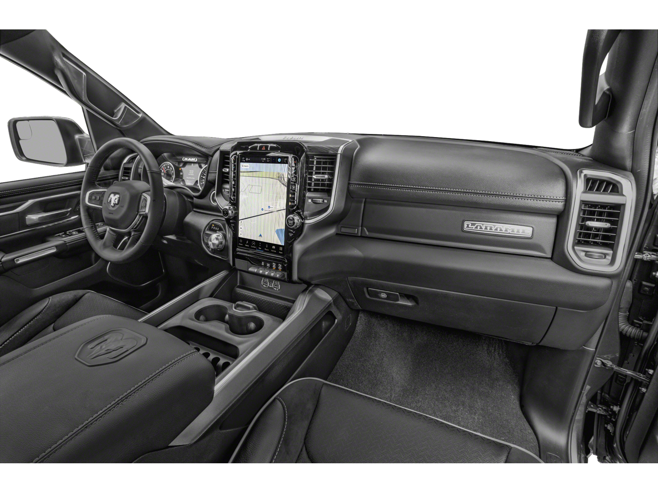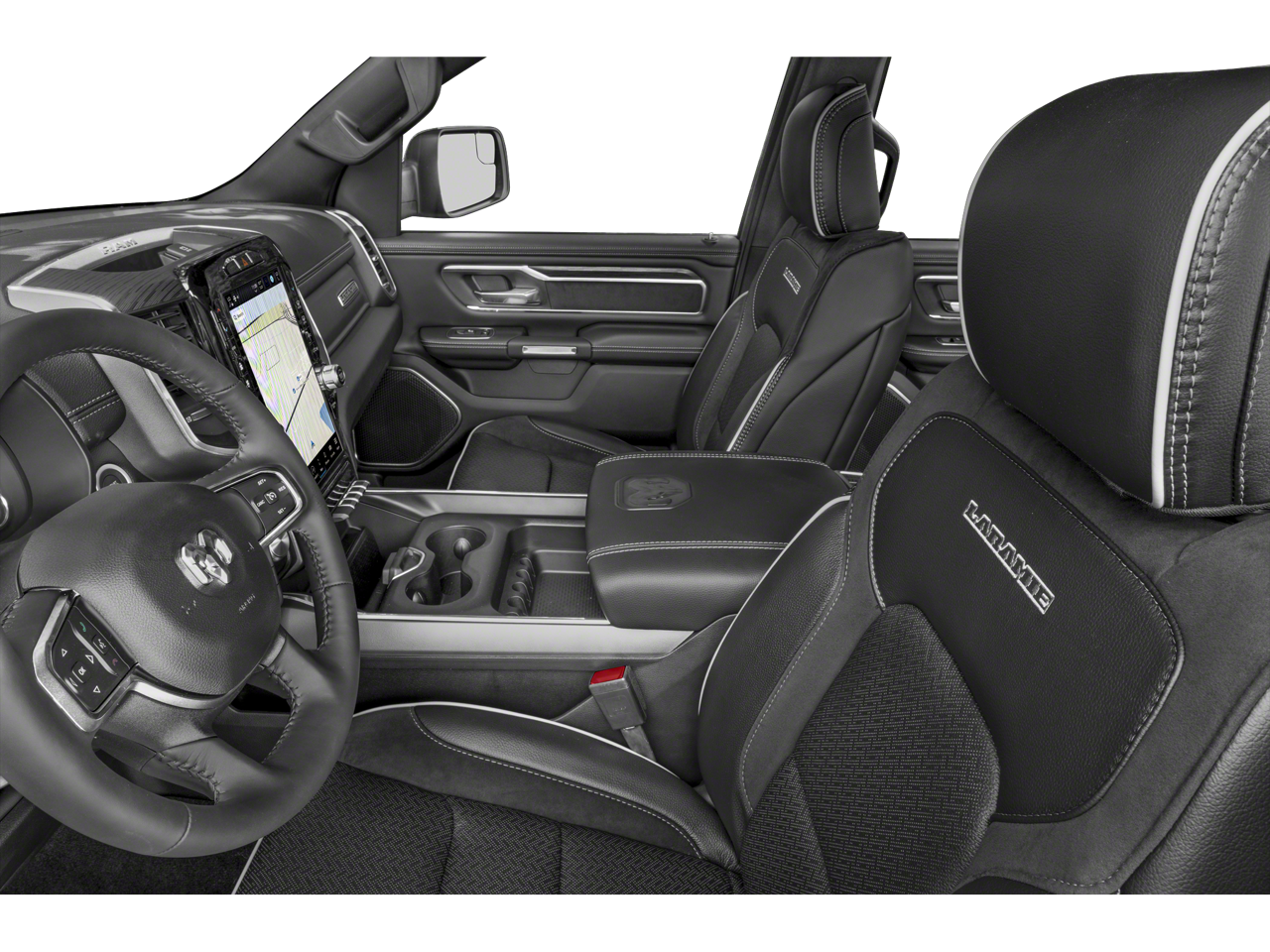 This 1500 Laramie includes Laramie Level 1 Equipment Group (12 Touchscreen Display, 2nd Row In Floor Storage Bins, 4G LTE Wi-Fi Hot Spot, Apple CarPlay, Auto High Beam Headlamp Control, Blind Spot & Cross Path Detection, Connected Travel & Traffic Services, Connectivity - US/Canada, Disassociated Touchscreen Display, Electric Shift-On-Demand Transfer Case, Foam Bottle Insert (Door Trim Panel), For Details, Visit DriveUconnect.com, For More Info, Call 800-643-2112, Front Door Accent Lighting, Front LED Fog Lamps, Global Telematics Box Module (TBM), Google Android Auto, GPS Antenna Input, GPS Navigation, HD Radio, Integrated Center Stack Radio, Integrated Voice Command w/Bluetooth®, LED Reflector Headlamps, Radio: Uconnect 5 Nav w/12.0 Display, Rain Sensitive Windshield Wipers, Rear Door Accent Lighting, Rear Power Sliding Window, Rear Window Defroster, Remote Tailgate Release, SiriusXM Radio Service, SiriusXM w/360L, and USB Host Flip), Quick Order Package 27H Laramie, #1 Seat Foam Cushion, 10 Speakers, 3 Rear Seat Head Restraints, 3.21 Rear Axle Ratio, 4 Way Front Headrests, 4-Wheel Disc Brakes, 48V Belt Starter Generator, ABS brakes, Adjustable pedals, Air Conditioning, Alloy wheels, AM/FM radio: SiriusXM with 360L, Apple CarPlay/Android Auto, Audio memory, Auto-dimming door mirrors, Auto-Dimming Exterior Driver Mirror, Auto-dimming Rear-View mirror, Automatic temperature control, Brake assist, Bumpers: chrome, Chrome Exterior Mirrors, Class IV Receiver Hitch, Compass, Convex Wide-Angle Exterior Mirror Insert, Delay-off headlights, Driver door bin, Driver Seat Memory, Driver vanity mirror, Dual front impact airbags, Dual front side impact airbags, Electronic Stability Control, Exterior Mirrors Courtesy Lamps, Exterior Mirrors w/Heating Element, Exterior Mirrors w/Memory, Exterior Mirrors w/Supplemental Signals, Front anti-roll bar, Front Center Armrest w/Storage, Front dual zone A/C, Front fog lights, Front License Plate Bracket, Front reading lights, Front Seat Back Map Pockets, Front wheel independent suspension, Fully automatic headlights, Garage door transmitter, Heated door mirrors, Heated Front Seats, Heated front seats, Heated Steering Wheel, Heated steering wheel, Illuminated entry, Leather steering wheel, Leather Trim 40/20/40 Bench Seat, Low tire pressure warning, Memory seat, Navigation System, Occupant sensing airbag, Outside temperature display, Overhead airbag, Overhead console, Panic alarm, ParkSense Front/Rear Park Assist w/Stop (DISC), ParkView Rear Back-Up Camera, Passenger door bin, Passenger vanity mirror, Pedal memory, Power 2-Way Driver Lumbar Adjust, Power 2-Way Passenger Lumbar Adjust, Power 8-Way Driver & Passenger Seats, Power door mirrors, Power driver seat, Power passenger seat, Power steering, Power windows, Power-Folding Mirrors, Radio data system, Radio: Uconnect 5 Nav w/8.4 Display, RAM Grille Badge - Chrome, Rear 60/40 Folding Seat, Rear anti-roll bar, Rear seat center armrest, Rear step bumper, Rear Wheelhouse Liners, Remote keyless entry, Security system, Speed control, Split folding rear seat, Steering wheel mounted audio controls, Tachometer, Telescoping steering wheel, Tilt steering wheel, Traction control, Trip computer, Turn signal indicator mirrors, Variably intermittent wipers, Ventilated Front Seats, Ventilated front seats, Voltmeter, Wheels: 18 x 8 Aluminum Base Painted, and Wheels: 20 x 9 Premium Paint/Polished . While every effort has been made to ensure display of accurate data, the vehicle listings within this web site may not reflect all accurate vehicle items. All Inventory listed is subject to prior sale. The vehicle photo displayed may be an example only. Pricing throughout the web site does not include any options that may have been installed at the dealership. Please see the dealer for details. Vehicles may be in transit or currently in production. Some vehicles are shown with optional equipme