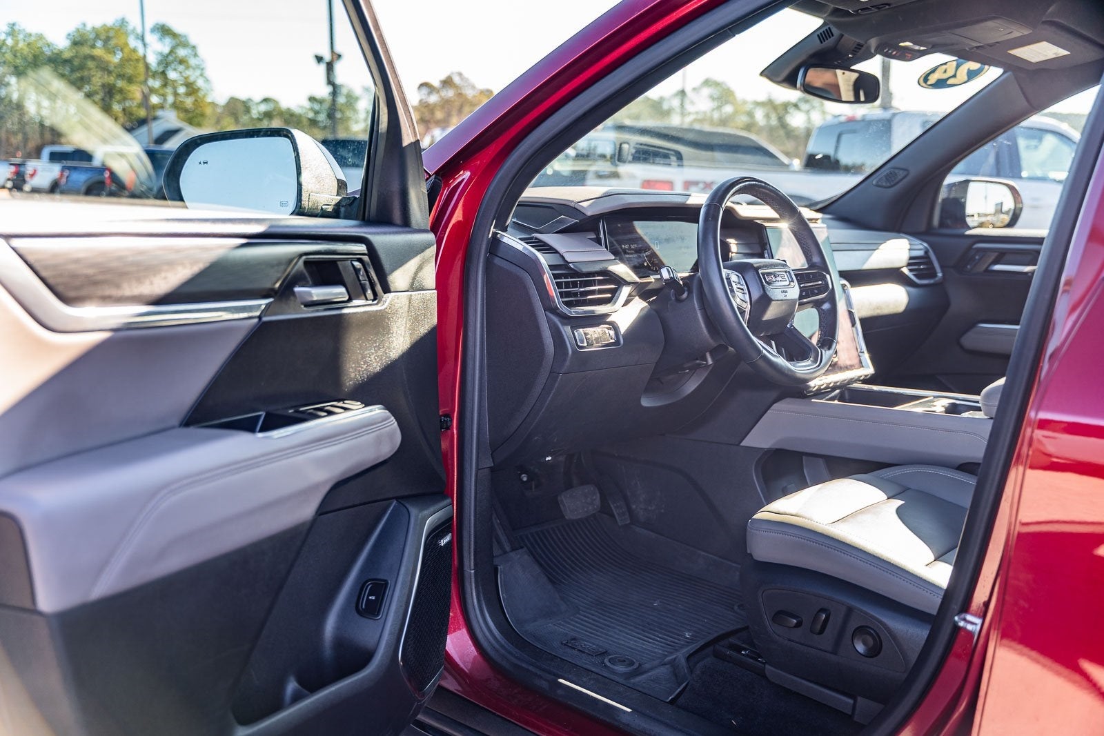 This vehicle comes equipped with Black Edition (Performance Suspension and Wheels: 22 x 8.5 Gloss Black Aluminum), Floor Liner Package (LPO) (1st & 2nd Row All-Weather Floor Liner (LPO) and 3rd Row All-Weather Floor Liner (LPO)), Luxury Package (8 Diagonal Head-Up Display, Heated Rear Outboard Seating Positions, Heated Wiper Park, and Laminated Acoustic Glass), Preferred Equipment Group 4SC, Trailering Package (220 Amp Alternator, Heavy-Duty Cooling System, Hitch View, and Trailering Assist Guideline Hitch Guidance), Ford Blue Certified Eligible Certified, FWD, Gideon Gray Cloth, 12 Speakers, 3.49 Final Drive Axle Ratio, 3rd row seats: split-bench, 4-Wheel Disc Brakes, 6-Way Power Front Passenger Seat Adjuster, 7-Passenger Seating (2-2-3 Seating Configuration), 8-Way Power Driver Seat Adjuster, ABS brakes, Air Conditioning, Alloy wheels, AM/FM radio: SiriusXM with 360L, Apple CarPlay/Android Auto, Auto High-beam Headlights, Auto-dimming Rear-View mirror, Automatic temperature control, Bodyside moldings, Bose Performance 12-Speaker System w/Sub-woofer, Brake assist, Bumpers: body-color, Compass, CoreTec Seat Trim, Delay-off headlights, Driver 4-Way Power Lumbar Seat Adjuster, Driver door bin, Driver vanity mirror, Dual front impact airbags, Dual front side impact airbags, Electronic Stability Control, Emergency communication system: OnStar and GMC connected services capable, Exterior Parking Camera Rear, Four wheel independent suspension, Front anti-roll bar, Front Bucket Seats, Front Center Armrest, Front dual zone A/C, Front fog lights, Front Passenger 4-Way Power Lumbar Seat Adjuster, Front reading lights, Fully automatic headlights, Garage door transmitter, Heated door mirrors, Heated Driver & Front Passenger Seats, Heated front seats, Heated steering wheel, Illuminated entry, Integrated Cargo Liner (LPO), Leather steering wheel, Low tire pressure warning, Navigation System, Not Equipped w/Heated Wiper Park, Occupant sensing airbag, Outside temperature display, Overhead airbag, Overhead console, Panic alarm, Passenger door bin, Passenger vanity mirror, Power door mirrors, Power driver seat, Power Liftgate, Power passenger seat, Power steering, Power windows, Radio data system, Radio: 15 Premium GMC Infotainment System, Rear air conditioning, Rear anti-roll bar, Rear reading lights, Rear side impact airbag, Rear window defroster, Rear window wiper, Remote keyless entry, Security system, SiriusXM w/360L, Speed control, Speed-sensing steering, Split folding rear seat, Spoiler, Sport steering wheel, Steering wheel mounted audio controls, Tachometer, Telescoping steering wheel, Tilt steering wheel, Traction control, Trip computer, Turn signal indicator mirrors, Variably intermittent wipers, Voltmeter, and Wheels: 20 x 8 Bright Silver Aluminum.