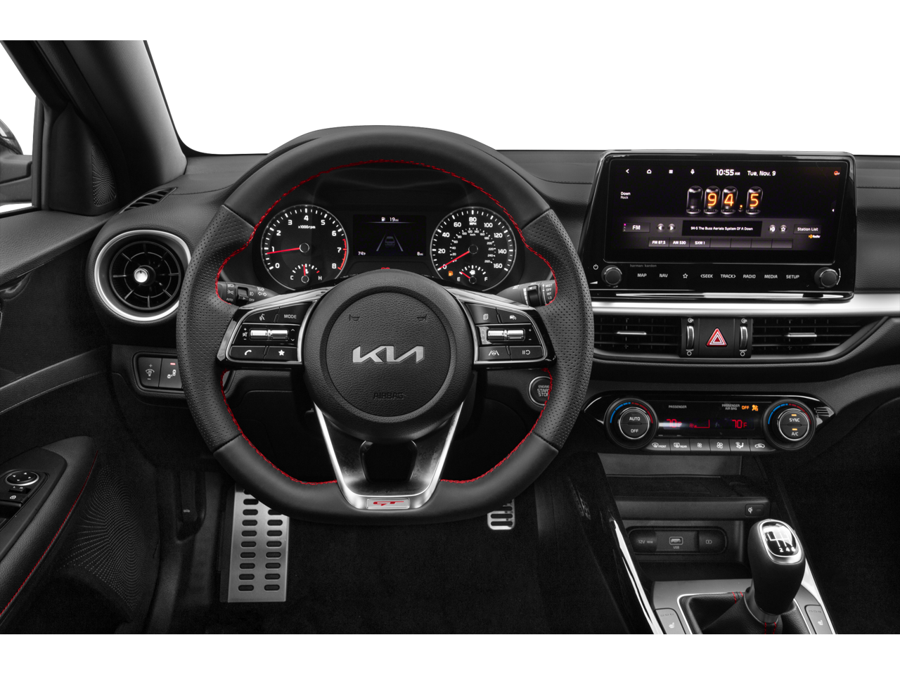 This Forte GT-Line includes 4-Wheel Disc Brakes, 6 Speakers, ABS brakes, Air Conditioning, Alloy wheels, AM/FM radio: SiriusXM, Apple CarPlay & Android Auto, Auto High-beam Headlights, Automatic temperature control, Brake assist, Bumpers: body-color, Cloth & SynTex Seat Trim, Delay-off headlights, Driver door bin, Driver vanity mirror, Dual front impact airbags, Dual front side impact airbags, Electronic Stability Control, Emergency communication system, Exterior Parking Camera Rear, Front anti-roll bar, Front Bucket Seats, Front Center Armrest, Front dual zone A/C, Front fog lights, Front reading lights, Front wheel independent suspension, Fully automatic headlights, Heated door mirrors, Illuminated entry, Leather Shift Knob, Leather steering wheel, Low tire pressure warning, Navigation System, Occupant sensing airbag, Outside temperature display, Overhead airbag, Overhead console, Panic alarm, Passenger door bin, Passenger vanity mirror, Power door mirrors, Power steering, Power windows, Radio data system, Radio: 10.25 Display Audio, Rear seat center armrest, Rear window defroster, Remote keyless entry, Security system, Speed control, Split folding rear seat, Spoiler, Sport steering wheel, Steering wheel mounted audio controls, Tachometer, Telescoping steering wheel, Tilt steering wheel, Traction control, Trip computer, Turn signal indicator mirrors, Variably intermittent wipers, and Wheels: 17 x 7.0 Alloy . While every effort has been made to ensure display of accurate data, the vehicle listings within this web site may not reflect all accurate vehicle items. All Inventory listed is subject to prior sale. The vehicle photo displayed may be an example only. Pricing throughout the web site does not include any options that may have been installed at the dealership. Please see the dealer for details. Vehicles may be in transit or currently in production. Some vehicles are shown with optional equipment. See the actual vehicle for complete accuracy of features, options & pricing. Because of the numerous possible combinations of vehicle models, styles, colors and options, the vehicle pictures on this site may not match your vehicle exactly; however, it will match as closely as possible. Some vehicle images shown are stock photos and may not reflect your exact choice of vehicle, color, trim and specification. Not responsible for pricing or typographical errors. Virtual Inventory, Available Configurations and In-Transit inventory contains vehicles that have not actually been manufactured. These vehicles show consumers sample vehicles that may be available. Pricing, Options, Color, and other data pertaining to these vehicles are provided for example only. All information pertaining to these vehicles should be independently verified through the dealer. 28/39 City/Highway MPG