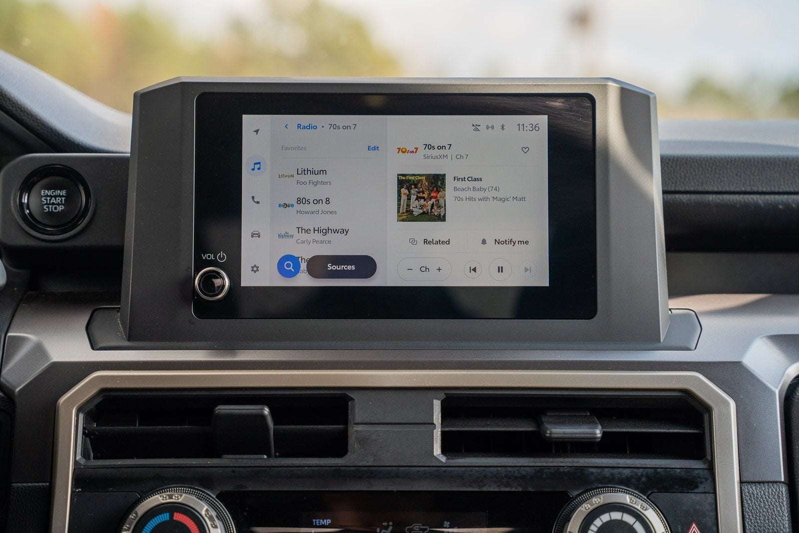 - Radio: 8" Toyota Audio Multimedia -inc: touchscreen, 6 speakers, wireless Apple CarPlay and Android Auto compatibility and SiriusXM w/3-month Platinum Plan trial subscription, See toyota.com/audio-multimedia for details