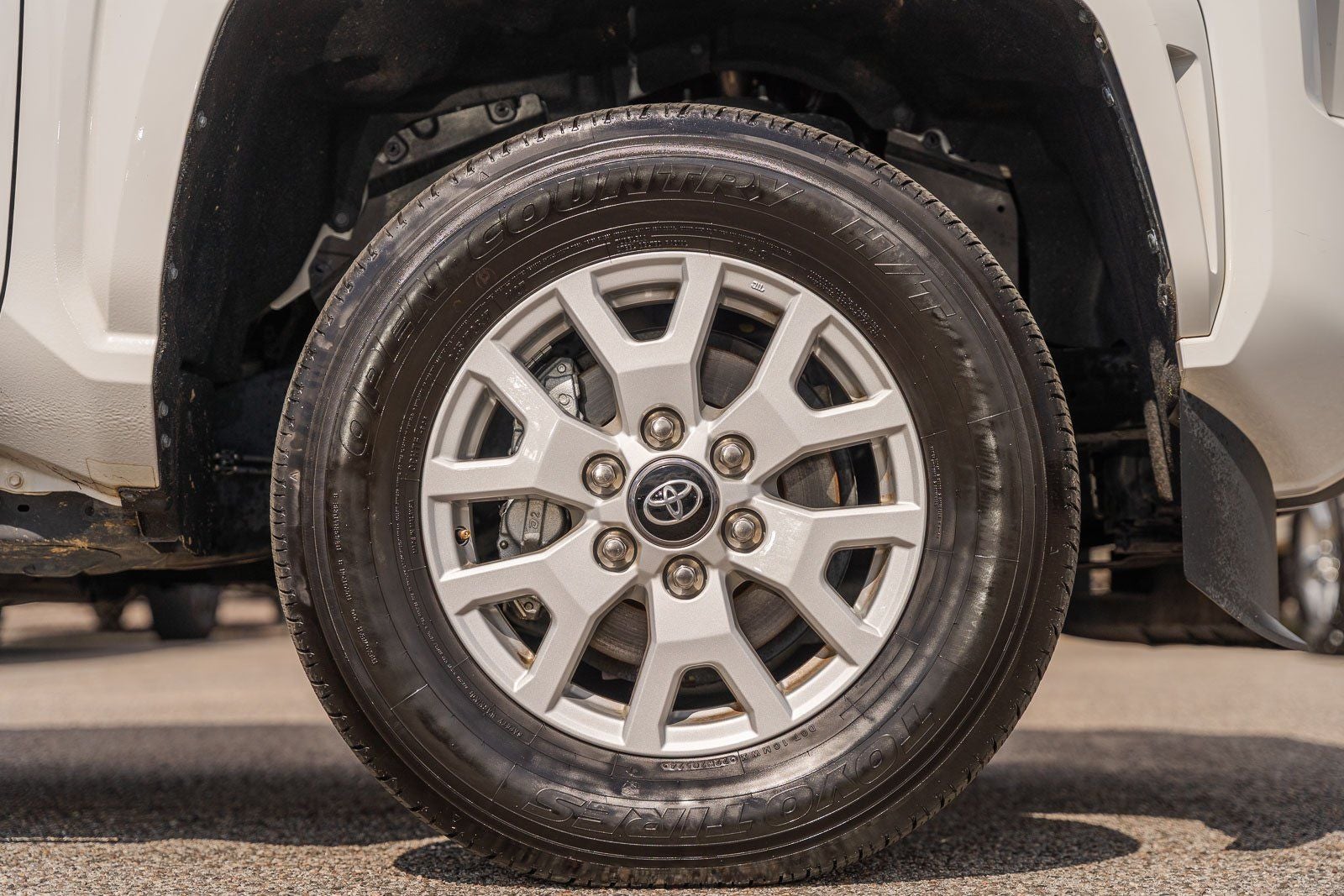 This vehicle comes equipped with 4WD, ABS brakes, Alloy wheels, Electronic Stability Control, Heated door mirrors, Illuminated entry, Low tire pressure warning, Remote keyless entry, Traction control, 3.583 Axle Ratio, 4-Wheel Disc Brakes, 6 Speakers, Air Conditioning, AM/FM radio: SiriusXM, Anti-whiplash front head restraints, Apple CarPlay/Android Auto, Auto High-beam Headlights, Auto-dimming Rear-View mirror, Brake assist, Bumpers: body-color, Driver door bin, Dual front impact airbags, Dual front side impact airbags, Emergency communication system: Safety Connect (1-year trial), Exterior Parking Camera Rear, Four wheel independent suspension, Front anti-roll bar, Front Bucket Seats, Front Center Armrest, Front fog lights, Front reading lights, Fully automatic headlights, Knee airbag, Occupant sensing airbag, Outside temperature display, Overhead airbag, Overhead console, Panic alarm, Passenger door bin, Power door mirrors, Power steering, Power windows, Radio: 8 Toyota Audio Multimedia, Rear step bumper, Rear window defroster, Speed control, Speed-sensing steering, Split folding rear seat, Steering wheel mounted audio controls, Tachometer, Telescoping steering wheel, Tilt steering wheel, Trip computer, Variably intermittent wipers, and Wheels: 17 Styled Alloy.