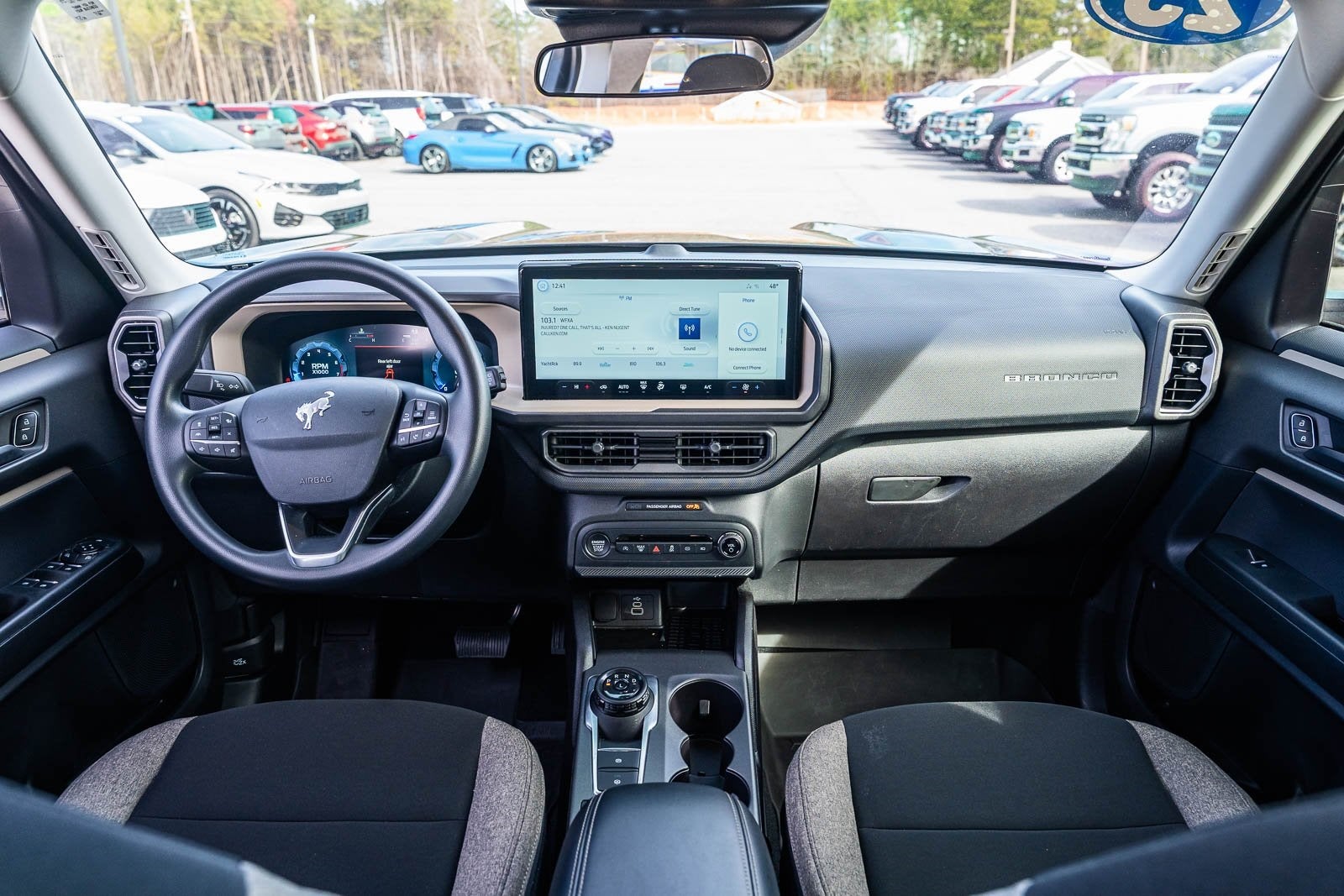 This vehicle comes equipped with Equipment Group 200A, Ford Certified, 4-Wheel Disc Brakes, 6 Speakers, ABS brakes, Air Conditioning, Alloy wheels, AM/FM radio: SiriusXM, AM/FM Stereo, Auto High-beam Headlights, Automatic temperature control, Brake assist, Cloth w/Easy-to-Clean Front Bucket Seats, Compass, Delay-off headlights, Driver door bin, Driver vanity mirror, Dual front impact airbags, Dual front side impact airbags, Electronic Stability Control, Emergency communication system: SYNC 4 911 Assist, Four wheel independent suspension, Front & Rear Floor Liners w/o Carpet Mats, Front anti-roll bar, Front Bucket Seats, Front Center Armrest, Front License Plate Bracket, Front reading lights, Fully automatic headlights, Heated door mirrors, Illuminated entry, Knee airbag, Low tire pressure warning, Occupant sensing airbag, Outside temperature display, Overhead airbag, Overhead console, Panic alarm, Passenger door bin, Passenger vanity mirror, Power door mirrors, Power steering, Power windows, Radio data system, Rear anti-roll bar, Rear Parking Sensors, Rear reading lights, Rear seat center armrest, Rear window defroster, Rear window wiper, Remote keyless entry, Security system, SiriusXM, Speed control, Speed-sensing steering, Speed-Sensitive Wipers, Split folding rear seat, Steering wheel mounted audio controls, SYNC 4 w/Enhanced Voice Recognition, Tachometer, Telescoping steering wheel, Tilt steering wheel, Traction control, Trip computer, Variably intermittent wipers, and Wheels: 17 Carbonized Gray-Painted Aluminum.