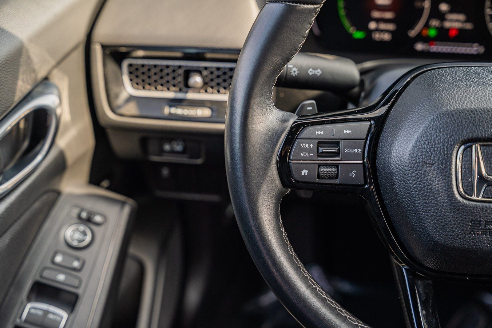- Leather steering wheel