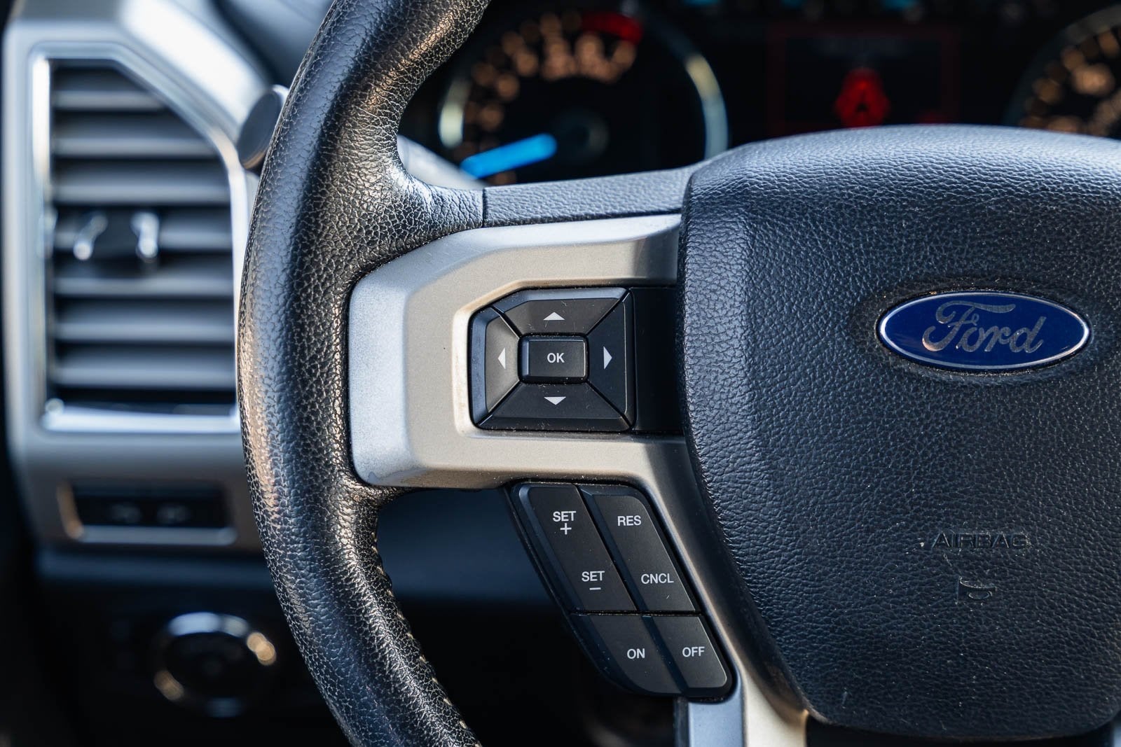 This vehicle comes equipped with Equipment Group 501A Mid (110V/400W Outlet, BLIS Blind Spot Information System, LED Side-Mirror Spotlights, Power Glass Sideview Mirr w/Body-Color Skull Caps, Remote Start System w/Remote Tailgate Release, Reverse Sensing System, and Universal Garage Door Opener), FX4 Off-Road Package (4x4 FX4 Off-Road Bodyside Decal, Front & Rear Off-Road Tuned Shock Absorbers, and Hill Descent Control), GVWR: 6,500 lbs Payload Package, Lariat Sport Appearance Package (Accent-Color 3-Bar Style Grille, Accent-Color Angular Step Bars, Body-Color Front & Rear Bumpers, Box Side Decal, Single-Tip Chrome Exhaust, and Wheels: 18 6-Spoke Machined-Aluminum), Trailer Tow Package (Auxiliary Transmission Oil Cooler, Class IV Trailer Hitch Receiver, Pro Trailer Backup Assist, and Upgraded Front Stabilizer Bar), 4WD, 18 Machined-Aluminum Wheels, 3.55 Axle Ratio, 4-Wheel Disc Brakes, 7 Speakers, ABS brakes, Adjustable pedals, Air Conditioning, Alloy wheels, AM/FM radio: SiriusXM, Auto-dimming door mirrors, Auto-dimming Rear-View mirror, Automatic temperature control, Brake assist, Bumpers: chrome, CD player, Compass, Delay-off headlights, Driver door bin, Driver vanity mirror, Dual front impact airbags, Dual front side impact airbags, Electronic Stability Control, Exterior Parking Camera Rear, Front anti-roll bar, Front Center Armrest w/Storage, Front dual zone A/C, Front fog lights, Front reading lights, Front wheel independent suspension, Fully automatic headlights, Heated door mirrors, Heated front seats, Illuminated entry, Leather-Trimmed 40/20/40 Front Seat, Low tire pressure warning, Memory seat, Occupant sensing airbag, Outside temperature display, Overhead airbag, Overhead console, Panic alarm, Passenger door bin, Passenger vanity mirror, Pedal memory, Power door mirrors, Power driver seat, Power passenger seat, Power steering, Power windows, Radio data system, Radio: Single-CD w/SiriusXM Satellite, Rear reading lights, Rear seat center armrest, Rear step bumper, Rear window defroster, Remote keyless entry, Security system, Speed control, Speed-sensing steering, Split folding rear seat, Steering wheel mounted audio controls, SYNC 3, Tachometer, Tailgate Step w/Tailgate Lift Assist, Telescoping steering wheel, Tilt steering wheel, Traction control, Trip computer, Turn signal indicator mirrors, Variably intermittent wipers, Ventilated front seats, Voltmeter, and Wheels: 20 6-Spoke Premium Painted Aluminum.