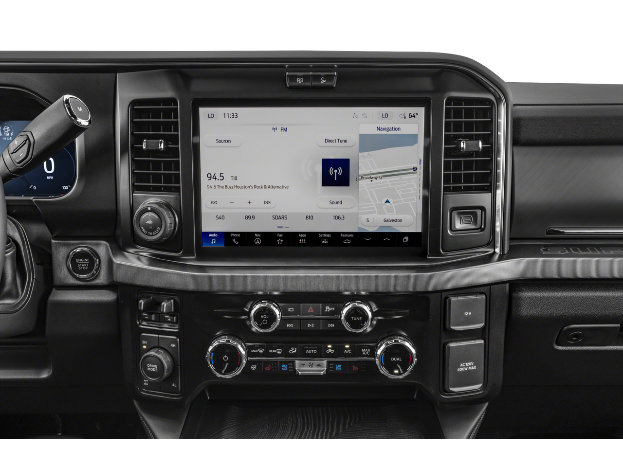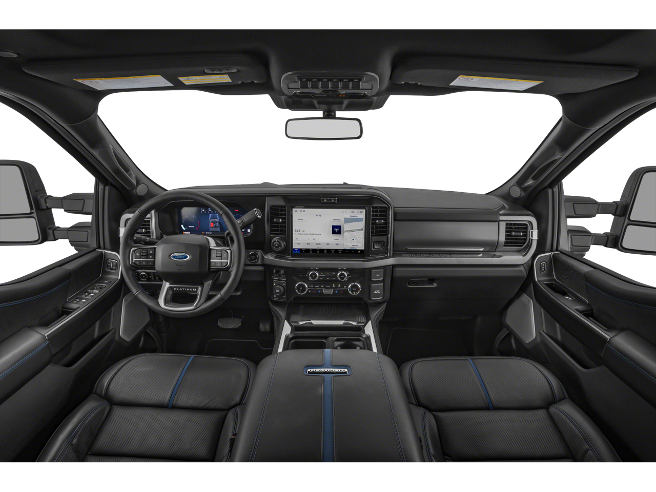 This vehicle comes equipped with 5th Wheel/Gooseneck Hitch Prep Package, FX4 Off-Road Package (Hill Descent Control, Off-Road Specifically Tuned Shock Absorbers, and Unique FX4 Off-Road Box Decal), Order Code 713A (Flow-Through Console, Radio: B&O Unleashed Sound System by Bang & Olufsen, and Unique Platinum Leather 40/Console/40 Seats), 4WD, 14 Speakers, 4-Wheel Disc Brakes, 410 Amp Dual Alternators, ABS brakes, Adjustable pedals, Air Conditioning, All-Weather Floor Mats, Alloy wheels, AM/FM radio: SiriusXM with 360L, Auto High-beam Headlights, Auto tilt-away steering wheel, Auto-dimming Rear-View mirror, Automatic temperature control, Brake assist, Bumpers: body-color, Compass, Delay-off headlights, Driver door bin, Driver vanity mirror, Dual front impact airbags, Dual front side impact airbags, Electronic Stability Control, Emergency communication system: SYNC 4 911 Assist, Engine Block Heater, Front anti-roll bar, Front Bucket Seats, Front Center Armrest, Front dual zone A/C, Front fog lights, Front reading lights, Fully automatic headlights, Garage door transmitter, Heads-Up Display, Heated door mirrors, Heated front seats, Heated rear seats, Heated steering wheel, Illuminated entry, Leather steering wheel, LED Roof Clearance Lights, Low tire pressure warning, Max Recline Seats, Memory seat, Navigation System, Outside temperature display, Overhead airbag, Overhead console, Panic alarm, Passenger door bin, Passenger vanity mirror, Pedal memory, Power door mirrors, Power driver seat, Power passenger seat, Power steering, Power windows, Rain sensing wipers, Rapid-Heat Supplemental Cab Heater, Rear reading lights, Rear seat center armrest, Rear step bumper, Rear window defroster, Remote keyless entry, Security system, Speed control, Split folding rear seat, Steering wheel memory, Steering wheel mounted A/C controls, Steering wheel mounted audio controls, Tachometer, Telescoping steering wheel, Tilt steering wheel, Traction control, Trip computer, Turn signal indicator mirrors, Twin Panel Power Moonroof, Upfitter Switches (6), Variably intermittent wipers, and Ventilated front seats.