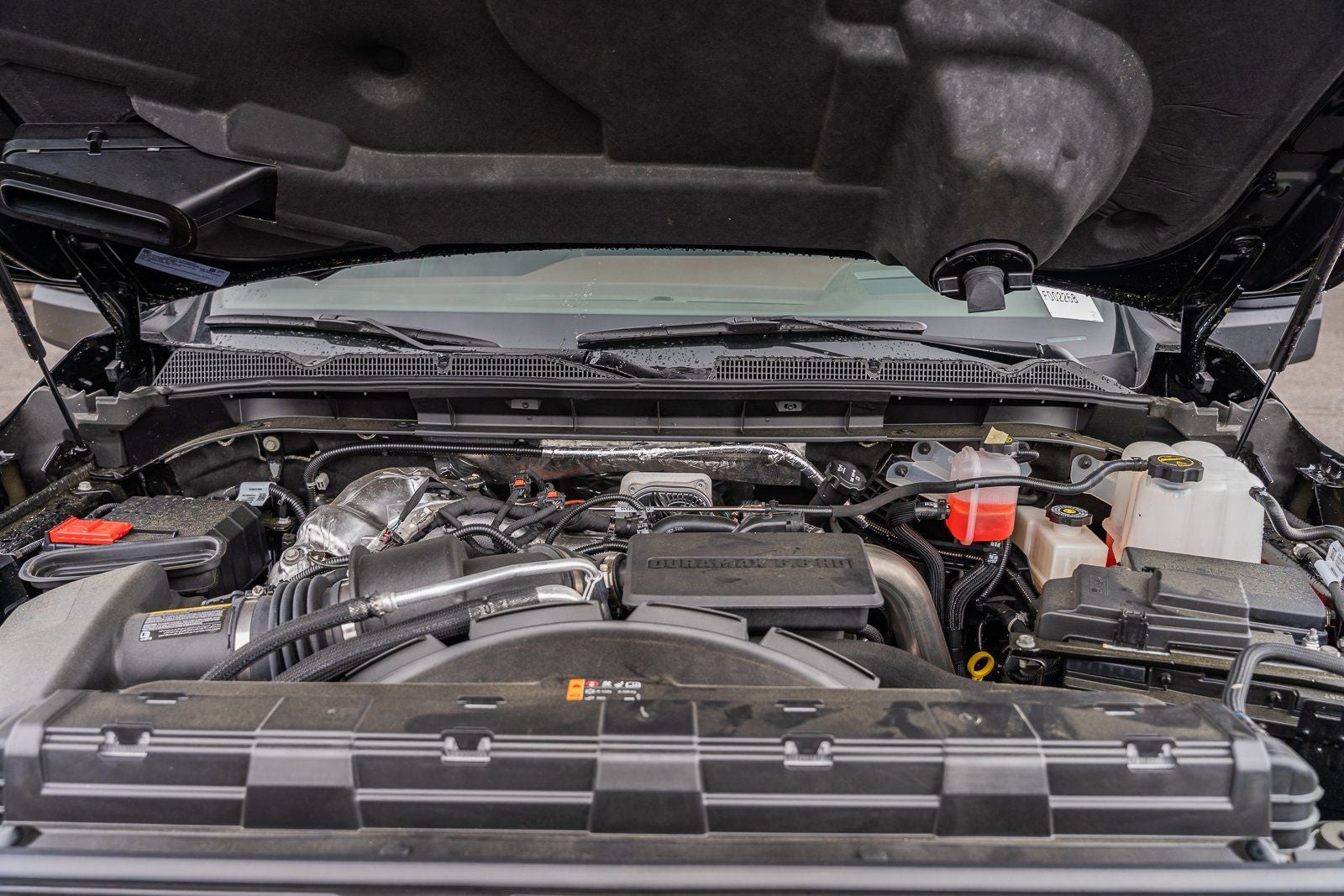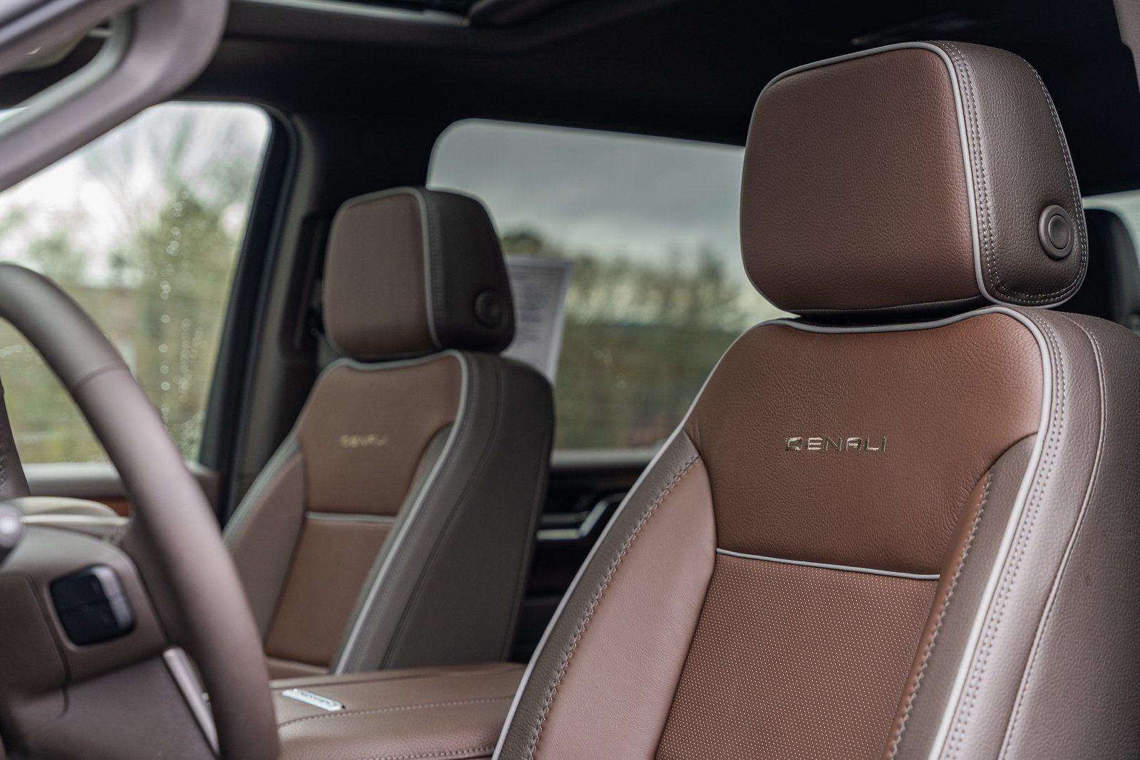 This vehicle comes equipped with Denali Reserve Package (Power Sunroof), Gooseneck/5th Wheel Prep Package, Preferred Equipment Group 5SA (120-Volt Bed Mounted Power Outlet, 120-Volt Instrument Panel Power Outlet, 2 Charge-Only Rear USB Ports, 2 Charge/Data USB Ports Inside Center Console, 2 USB Ports, 2-Speed Active Transfer Case, Bed View Camera w/2 Trailer Camera Provisions, Bose Premium 7-Speaker Sound System, Deep-Tinted Glass, Electric Rear-Window Defogger, Floor-Mounted Center Console, Front Rain-Sensing Wipers, HD Surround Vision, Heated 2nd Row Outboard Seats, Heated Driver & Front Outboard Passenger Seats, Keyless Open & Start, LED Cargo Area Lighting, LED Smoked Amber Roof Marker Lamps, Manual Tilt-Wheel/Telescoping Steering Column, Polished Exhaust Tip, Power Front Windows w/Passenger Express Up/Down, Power Sliding Rear Window w/Defogger, Push Button Start, Rear Cross Traffic Alert, Remote Vehicle Starter System, Safety Alert Seat, Signature Chrome Denali Grille, SiriusXM w/360L Trial Subscription, Spray-On Pickup Bedliner w/GMC Logo, Steering Wheel Audio Controls, Trailer Camera Provisions, Trailer Side Blind Zone Alert, Ultrasonic Front & Rear Park Assist, Unauthorized Entry Theft-Deterrent System, Universal Home Remote, Ventilated Driver & Front Passenger Seats, Wireless Charging, and Wireless Phone Projection), Technology Package (Auto-Dimming Inside Rearview Mirror w/Camera and Multicolor 15 Diagonal Head-Up Display), 10-Speed Automatic, 4WD, Atmosphere/Brownstone Leather, 12-Way Power Driver Seat Adjuster w/Lumbar, 12-Way Power Passenger Seat Adjuster w/Lumbar, 220 Amp Alternator, 3.42 Rear Axle Ratio, 3.73 Rear Axle Ratio, 4-Wheel Disc Brakes, 7 Speakers, ABS brakes, Air Conditioning, Alloy wheels, AM/FM radio: SiriusXM with 360L, Auto High-beam Headlights, Auto-dimming door mirrors, Auto-dimming Rear-View mirror, Automatic Emergency Braking, Automatic temperature control, Brake assist, Buckle to Drive, Bumpers: body-color, Compass, Delay-off headlights, Driver door bin, Driver Memory, Driver vanity mirror, Dual front impact airbags, Dual front side impact airbags, Electronic Stability Control, Engine Block Heater, Exhaust Brake, Exterior Parking Camera Rear, Following Distance Indicator, Forge Perforated Leather Seat Trim, Forward Collision Alert, Front anti-roll bar, Front Bucket Seats, Front Center Armrest, Front dual zone A/C, Front fog lights, Front Pedestrian Braking, Front reading lights, Front wheel independent suspension, Fully automatic headlights, Garage door transmitter, Genuine wood dashboard insert, Genuine wood door panel insert, GMC Premium 13.4 Diagonal Information Display, Heated door mirrors, Heated front seats, Heated rear seats, Heated steering wheel, Heavy-Duty 80 Amp-Hr Battery, Hitch Guidance w/Hitch View, Illuminated entry, IntelliBeam Automatic High Beam On/Off, Lane Departure Warning System, Low tire pressure warning, Memory seat, Occupant sensing airbag, Outside temperature display, Overhead airbag, Overhead console, Panic alarm, Passenger door bin, Passenger vanity mirror, Pickup Bed, Power door mirrors, Power driver seat, Power passenger seat, Power steering, Power windows, Power-Retractable Assist Steps, Radio: AM/FM w/Premium GMC Infotainment System, Rain sensing wipers, Rear reading lights, Rear seat center armrest, Rear step bumper, Rear window defroster, Remote keyless entry, Security system, Speed control, Speed-sensing steering, Split folding rear seat, Steering wheel mounted audio controls, Tachometer, Telescoping steering wheel, Tilt steering wheel, Traction control, Trip computer, Turn signal indicator mirrors, Variably intermittent wipers, Ventilated front seats, Voltmeter, and Winter Grille Cover.
